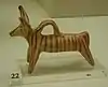 | Figurine animale avec boucle dorsale | Figurine en terre cuite peinte. | 1400 à 1300 av. J.-C.  HR IIIA  |