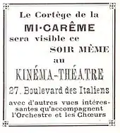 - 1914 – Documentaire sur la Mi-Carême 1914 annoncé dans La Presse[7].