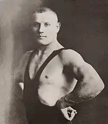 Le lutteur Väinö Kokkinen champion olympique dans la catégorie poids moyens.