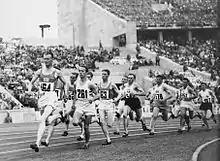 Gunnar Hockert en tête du 5000 m qu'il va bientôt remporter.