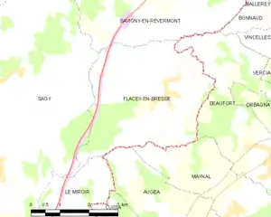Flacey-en-Bresse fait partie de la Bresse louhannaise.