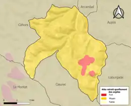Carte des zones d'aléa retrait-gonflement des sols argileux de Flaujac-Poujols.