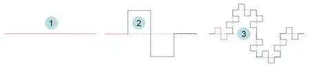 On peut la créer à partir d'un segment de droite, en modifiant récursivement chaque segment de droite de la façon suivante :