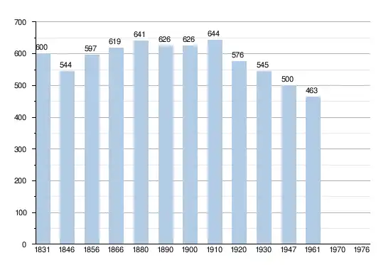 - Sources:INS, Rem:1831 jusqu'en 1970=recensements, 1976= nombre d'habitants au 31 décembre