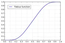 La fonction Fabius est définie sur l'intervalle et est donnée par la fonction de répartition de