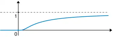 a un dénominateur strictement positif sur toute la droite réelle, ainsi g est également régulière. Plus encore, g(x) = 0 pour x ≤ 0 et g(x) = 1 pour x ≥ 1, ainsi elle montre une transition régulière de 0 à 1 sur l'intervalle unité [0;1]. Par translation, on peut construire une transition sur l’intervalle [a,b] avec a < b en considérant la fonction