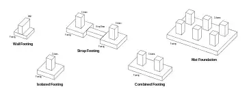 Il existe plusieurs types de fondations superficielles[1]. Les deux plus courantes sont :
