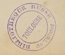 Le registre des délibérations de la Société russe de Toulouse fait état de la création d'une bibliothèque de lecture en 1910 sous le nom de "Bibliothèque Tolstoï". Elle siège à Toulouse dans le quartier Saint-Étienne et ouvre plusieurs soirs par semaine. L'usage de cette bibliothèque associative est réservé aux membres qui s'acquittent d'une cotisation mensuelle.