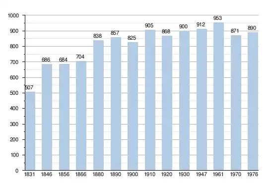 - Sources : INS, Rem. : 1831 jusqu'en 1970 = recensements, 1976 = nombre d'habitants au 31 décembre.