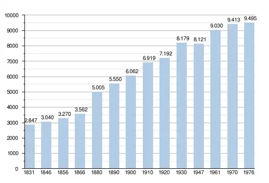 - Source: DGS , de 1831 à 1981=recensements population; à partir de 1990 = nombre d'habitants chaque 1 janvier