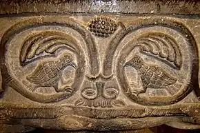 Les angles de la face supérieure de la cuve sont ornés des symboles des quatre évangélistes : l'homme (Matthieu), l'aigle (Jean), le bœuf (Luc) et le lion (Marc).