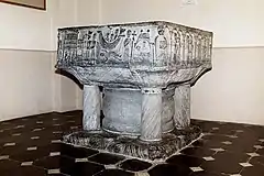 - (les fonts baptismaux) dans l'église Saint-Michel, à Gerpinnes