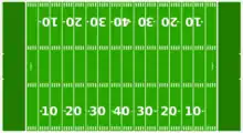 Le football à six est un sport au rythme rapide se jouant sur un terrain de 80 yards (73 mètres) de long sur 40 yards (37 m) de largeur, au lieu des 100 yards sur 160 pieds (91 mètres sur 48,8) des terrains de football conventionnels.