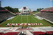 Les stades utilisés aux États-Unis par les franchises professionnelles ou les équipes universitaires de football américain sont souvent d'immenses enceintes dont certaines comptent parmi les plus grandes au monde. En 2016, 38 073 667 spectateurs ont assisté aux 873 matchs concernant la Division I FBS, soit une moyenne de 43 612 spectateurs par match[15]. Dans ce domaine, tous sports confondus au niveau mondial, seule la NFL fait mieux (69 487 en 2016) (voir : Liste des affluences sportives).