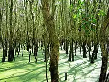 Vue des troncs inondés des cajeputs.
