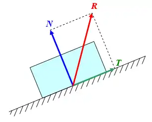 Cette dernière propriété des forces permet de séparer une force en plusieurs composantes et est utilisée par exemple pour décomposer une force de réaction R en ses composantes normale (l'effort d'appui N) et tangentielle (l'effort de frottement T).