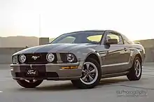 La Mustang GT était équipée d'un V8 SOHC modulaire à 3 soupapes de 4,6 L entièrement en aluminium avec un calage d'arbre à cames variable et une transmission Tremec TR-3650 plus robuste. Le moteur produit 304 ch (224 kW) à 5 750 tr/min et 433 N m de couple à 4 500 tr/min. Le modèle GT était capable d'effectuer un test de 402 m en 13,8 secondes à 159 km/h, avec une accélération de zéro à 97 km/h en 5,6 secondes[24]. La Mustang GT était également équipée d'un différentiel à glissement limité avec les mêmes disques d'embrayage en fibre de carbone que ceux utilisés dans la Cobra SVT de 2003 à 2004 et la Shelby GT500 de 2007. Le différentiel utilise les axes à 31 cannelures et la couronne dentée de 224 mm. Le rapport de démultiplication final standard des Mustang GT à transmission manuelle de 2005 et 2006 était de 3,55:1. Depuis l'année modèle 2007, un rapport d'entraînement final de 3,31:1 était standard avec l'engrenage de 3,55:1 disponible en option installée d'usine. Les modèles équipés d'une transmission automatique de toutes les années ont un rapport de 3,31:1.