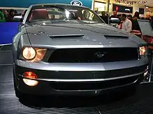 Le concept Ford Mustang GT coupé Tungsten Silver comprenait un toit en verre et des écopes de capot fonctionnelles, ainsi qu'un intérieur en cuir rouge et anthracite accentué par du matériel en aluminium brossé et un moteur MOD de 4,6 L suralimenté d'une puissance de près de 406 ch (298 kW)[7].