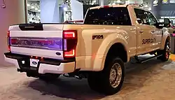 Le Super Duty de 2020 a fait ses débuts au Salon de l'auto de Chicago 2019 en février[27]. Il présente une conception de calandre et de hayon révisés, de nouvelles options de roues et des matériaux intérieurs de meilleures qualités pour la finition Limited. Un nouveau moteur essence de 7,3 litres est disponible. Surnommé «Godzilla», il développe 436 ch (321 kW) et 644 N m de couple. Le moteur Power Stroke de 6,7 litres a été renforcé, augmentant la puissance à 482 ch (354 kW) et 1 424 N m de couple. La transmission automatique TorqShift 10R140 de Ford à 10 vitesses est désormais de série avec les moteurs Diesel et essence de 7,3 litres sur le F-250 et tous les moteurs sur le F-350; la transmission 6 vitesses est toujours disponible, mais uniquement dans le F-250 avec le moteur de 6,2 litres.