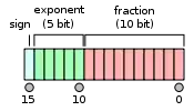 La norme IEEE 754[9] spécifie un binary16 comme ayant le format suivant :