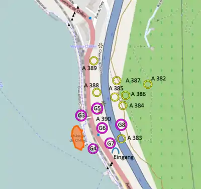 Il était constitué d'une barricade antichar sur la route principale entre le mur de soutènement de la ligne de chemin de fer et un bâtiment au bord du lac[13]. Il était sous le feu d'un ouvrage d'infanterie souterrain et creusé dans le roc placé quelques centaines de mètres en retrait dans une butte entre la route et la voie ferrée. À sa construction l’armement comprenait un canon antichars Pak 41 de 4,7 cm, remplacé plus tard par un Pak 50/57 (de) de 9 cm sur affût à pivot, et une mitrailleuse. En outre la route et le mur de soutènement de la voie de chemin de fer, qui constituaient ici des ouvrages minés (OMI), pouvaient d'être détruits sur plusieurs dizaines de mètres.