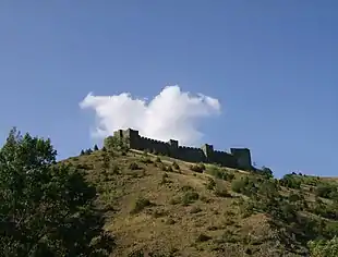 À l'intérieur des murs se trouvent d'importants vestiges du palais et de l'église Saint-Georges. De plan rectangulaire, l'église est un édifice à nef unique. De nombreux éléments architecturaux la rattachent à l'architecture gothique. L'édifice était peint[2],[3]. À l'est de l'église se trouve une citerne et, le long des remparts, se trouvaient des bâtiments pour le logement des soldats ainsi que d'autres bâtiments pour d'autres usages[2],[3].