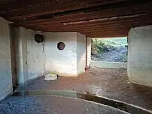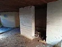 Intérieur de la casemate VF. Distinguable à gauche, l'emplacement de l'ancienne étagère murale.