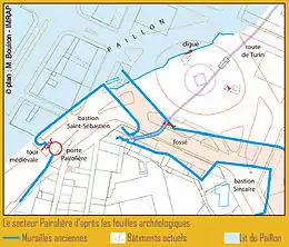 La porte Pairolière a été fouillée pendant les travaux de construction du tramway de Nice, près de la place Garibaldi. La fouille, sur 2 000 m² a permis de mettre au jour les structures de cette partie nord-est des défenses de la ville basse.