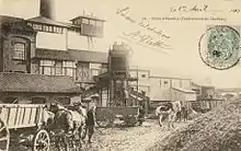 |   La fosse d'Haveluy vers 1900. À gauche, les molettes du puits no 2 dépassent, le chevalement du puits no 1 est à droite. | |