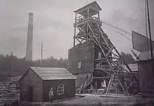 Vue globale du chevalement et de la salle des machines.