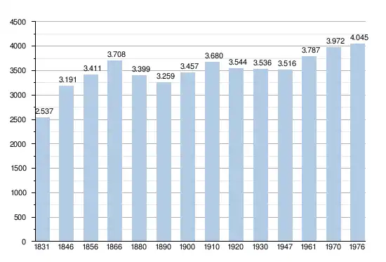 Les chiffres des années 1831 à 1970 tiennent compte des chiffres des anciennes communes fusionnées.