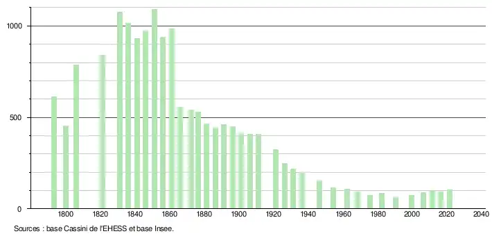 | Rang de la commune dans le département | 412 | 529 | 540 | 523 | 513 | 483 | 484 | 476 |