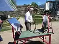 Les visiteurs du four solaire de Mont-Louis sont amenés par le guide au cœur des installations pour leur expliquer le fonctionnement et l'utilisation du four.