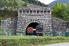 La commune possédait sur son territoire jusqu’à la fin des années 1970 un monument faisant l’objet d’un classement au titre des monuments historiques[28] : l’« entrée monumentale » du tunnel ferroviaire du Mont-Cenis. Cette entrée, rapidement abandonnée après la mise en service de la ligne pour cause d’instabilité géologique, a été déplacée et reconstituée à l'identique sur la commune voisine de Modane (route de Valfréjus) lors des travaux de construction du viaduc du Charmaix conduisant au tunnel routier du Fréjus en 1977. Une locomotive à vapeur et deux wagons ont été installés sur le site.