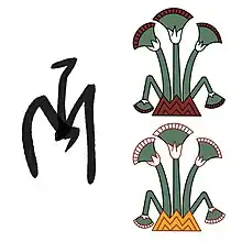 | C'est un symbole de la Basse-Égypte, il peut être remplacé par l'hiéroglyphe M16 |
