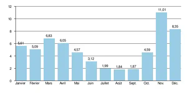 (08/08/2014 - données calculées sur 12 ans de 2001 à 2014)