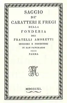 Après quelques années, le « Saggio de' fregi della fonderia de' fratelli Amoretti » a été imprimé.