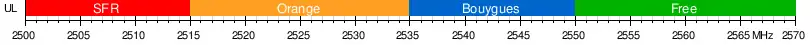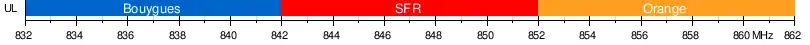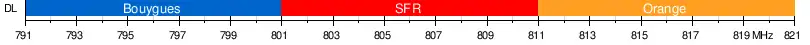 Avec quelques exceptions locales jusqu'au 1er juillet 2015[10] où Bouygues a temporairement conservé 23,8 MHz duplex :