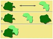 • À échelle continentale et à celle des modifications paléoclimatiques, on peut évoquer l'exemple des forêts tropicales humides du Carbonifère (-300 millions d'années environ) de l'Euramérique se sont scindées en sous-ensembles lors d'une réchauffement et un assèchement du climat qui ont entraîné la diminution de la diversité des amphibiens mais ont stimulé la diversification des reptiles[28]. Ces changements lents se sont déroulés sur des dizaines voire des centaines de millions d'années, ils sont source de l'évolution et de la diversification du Vivant. Ces échelles de temps ne sont absolument pas comparables à la vitesse, rythmes de la fragmentation ou de la destruction des forêts par l'Homme, rapportés à échelle géologique, ces bouleversements sont brutaux (Cf. la Sixième extinction)[28].