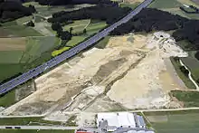 À la différence de l'autoroute 9, le TGV Nuremberg-Ingolstadt en construction (2001) passe en tunnel sous le massif précédemment ouvert par l'autoroute