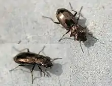 par radio-tracking[52] et avant cela de « Capture-marquage-recapture », une thèse[53] en Écologie du paysage a montré en 1991 que même des routes forestières non fréquentées constituaient un obstacle majeur aux déplacements de carabidés forestiers comme Abax ater (coléoptère fréquent des lisières forestières et du bocage), qui bien que sachant parfaitement voler, «refuse» de traverser une route coupant son habitat.