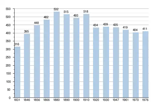 - Sources:INS, Rem:1831 jusqu'en 1970=recensements, 1976= nombre d'habitants au 31 décembre