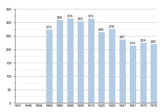 - Source: DGS, 1831 à 1970=recensements population, 1976= habitants au 31 décembre