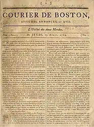 La langue française est restée présente à Boston à l’époque où elle était une colonie britannique, bien que peu abondante, en partie à cause de la crainte de l’influence du catholicisme; sur le plan académique, cela a empêché la langue d’être acceptée rapidement à Harvard, où son premier professeur a été renvoyé en 1735, après deux ans d’enseignement, à cause de rumeurs de conversion des étudiants du protestantisme[10]. Six décennies plus tard, l’un des premiers éditeurs de manuels de français des Amériques fut le premier professeur de français salarié de Harvard, Joseph Nancrède, qui compila des textes français contemporains et les publia en 1792 dans son L’Abeille françoise, en plus des traductions limitées en anglais. Quelques années auparavant, en 1789, Nancrède créait le premier journal français de Boston, un hebdomadaire éphémère publié pendant six mois cette année-là, qu’il décrivait dans son prospectus comme un moyen de favoriser le commerce entre les Américains et le monde francophone, et de « communiquer les idées adéquates de la Majesté du Congrès aux nations qui savent à peine qu’il en existe un »[10],[11].