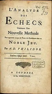 En 1749, Philidor publie « L'Analyze des Échecs » à l'âge de 22 ans, un des premiers traités d'échecs en langue française et un classique du genre. L'ouvrage sera édité une centaine de fois et traduit rapidement dans de nombreuses langues : anglais (Analysis of the Game of Chess, 1790), allemand, espagnol (Análisis del juego de ajedrez, 1827), russe, yiddish, etc.