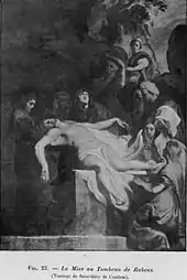 La mise au tombeau de Rubens représente Saint-Joseph d'Arimathie et Nicodème portant le corps de Jésus, accompagnés de saint Jean et des trois saintes femmes. L'une de ces femmes est la vierge en vêtement bleu, l'autre Madeleine en vêtement vert représentée sous les traits d'Isabella Brant, modèle puis première épouse de Rubens[7],[8]. Cette peinture fut achetée par le chanoine Sébastien Briquet et donnée en 1616 aux Capucins de Cambrai pour l'église Saint-Aubert, l'actuelle Saint-Géry[9]. Pour la Mise au tombeau également appelée la Descente de Croix, Rubens en 1616 avait fait le Christ nu. D’après Eugène Bouly il n'est plus intact : « Une main étrangère jeta sur ce tableau un voile que la décence crut devoir imposer »[10]. La retouche est attribuée à L’Anonyme d'Anvers. Le Mercure de France évoque la colère de Rubens: « Les moines ne se tinrent pas pour vaincus devant une telle représentation du Christ et trouvèrent un peintre assez éhonté pour prostituer de sa brosse le chef-d'œuvre de Rubens. À coup sûr la main trembla au misérable anonyme d'Anvers car rien n'est mauvais comme cette tache baveuse et blanchâtre qu'il barbouilla. Rubens qui n'avait point reçu le prix de son tableau revint à Cambrai à quelque temps de là et s'en fut à l'abbaye de Saint-Aubert. À la vue de la stupide profanation, il saisit une échelle, s'élança jusqu'au tableau et le balafra d'un grand coup de dague »[11].