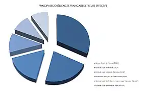 | Grand Orient de France | 50 000 (0,3 % F)[N 10] | 1 250 | |