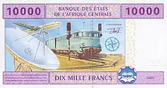 | 10 000 francs CFA | Violet | 80 x 150 mm | ![]() |