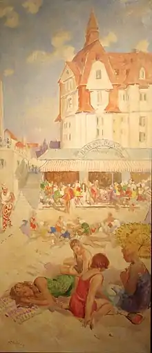 - Le Touquet-Paris-Plage, musée : Le Bar de la plage et le Grand Hôtel du Touquet, 1929, huile sur toile, 174 × 78 cm, don de Mme Debry-Ioos[alpha 2], collection du musée du Touquet-Paris-Plage[5]