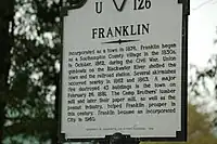 Ce n'est pas avant 1887 que Franklin commence à avoir une croissance significative. Six frères de la famille Camp prennent alors possession d'une petite scierie le long de la Blackwater. Pendant 20 ans, leur entreprise devient prospère sous la direction de Paul Douglas Camp. Après avoir échappé de peu à la faillite, la Première Guerre mondiale apporte de nouvelles affaires et des succès financiers. Franklin devient un village en pleine expansion en temps de guerre[3].